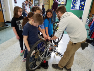 A crash course (minus the crashing!) in bicycle maintenance helped 4th and 5th graders at Green Springs Elementary in Olathe piece together a knowledge of bike mechanics they quickly put to good use. After seven weeks of after-school instruction, students helped repair eight previously owned bikes for donation to Mission Southside, an agency committed to serving low-income residents of Johnson County with volunteered goods and services. This was only made possible by dedication on the part of the students, the committed staff leads, and facilitators from BikeWalkKC’s Bike Club youth development program.