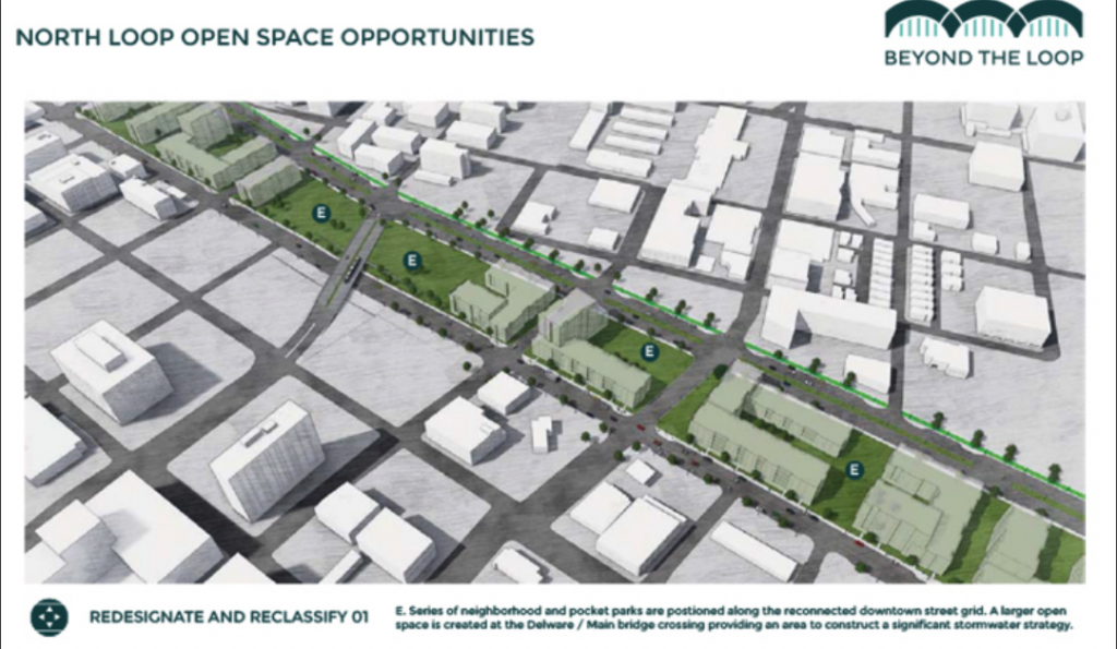 Several options range from consolidating the current maze of on/off ramps, to shrinking the freeway to smaller footprint to create parks and open space, to completely removing it to develop new housing, commercial, and public space.