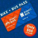 A partnership of the Kansas City Area Transportation Authority (RideKC) and BikeWalkKC’s RideKC Bike bike share program, the Bike + Bus Pass allows users to access both bike share and bus from a single pass card. Users who maintain a 31-day bus pass for $50/month can upgrade their membership to the Bike + Bus Pass for no additional cost, adding unlimited 60-minute bike share trips to their transit options.