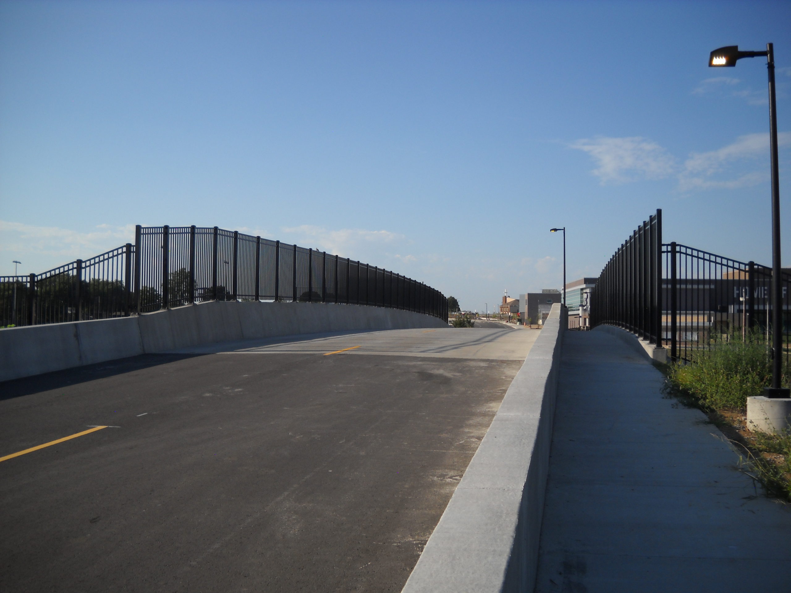 The new bridge connects the campuses and the neighborhoods with a street and a sidewalk.