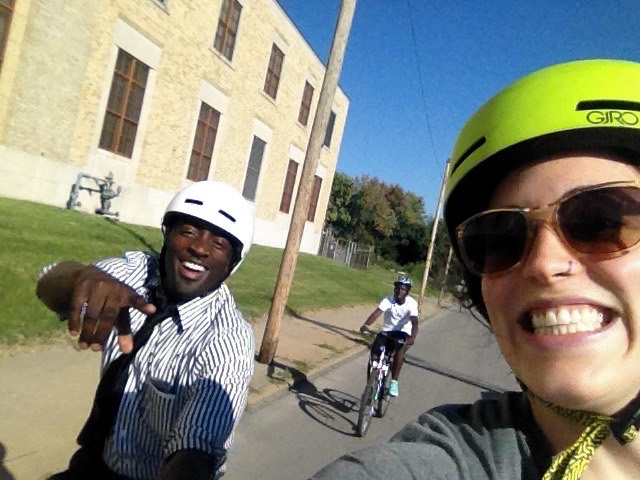Councilman Jermaine Reed (left) rides with the East High School Bike Club.