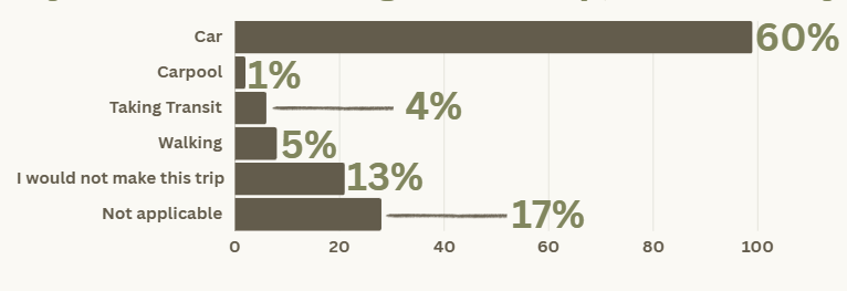 This bar chart shows the responses to the question, “If you were not biking for this trip, how would you be traveling?” Note that this question was only for people biking.