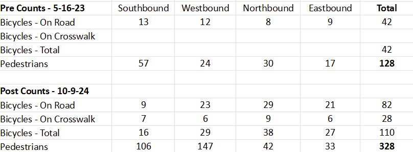 Oak Street Pre & Post- Implementation Counts