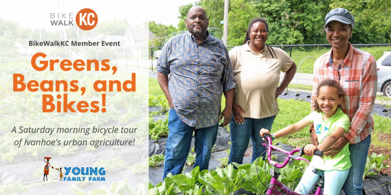 Greens, Beans, and Bikes! is open to BikeWalkKC members and their families, and space is very limited. Use your BikeWalkKC member code* to register now to save your spot!