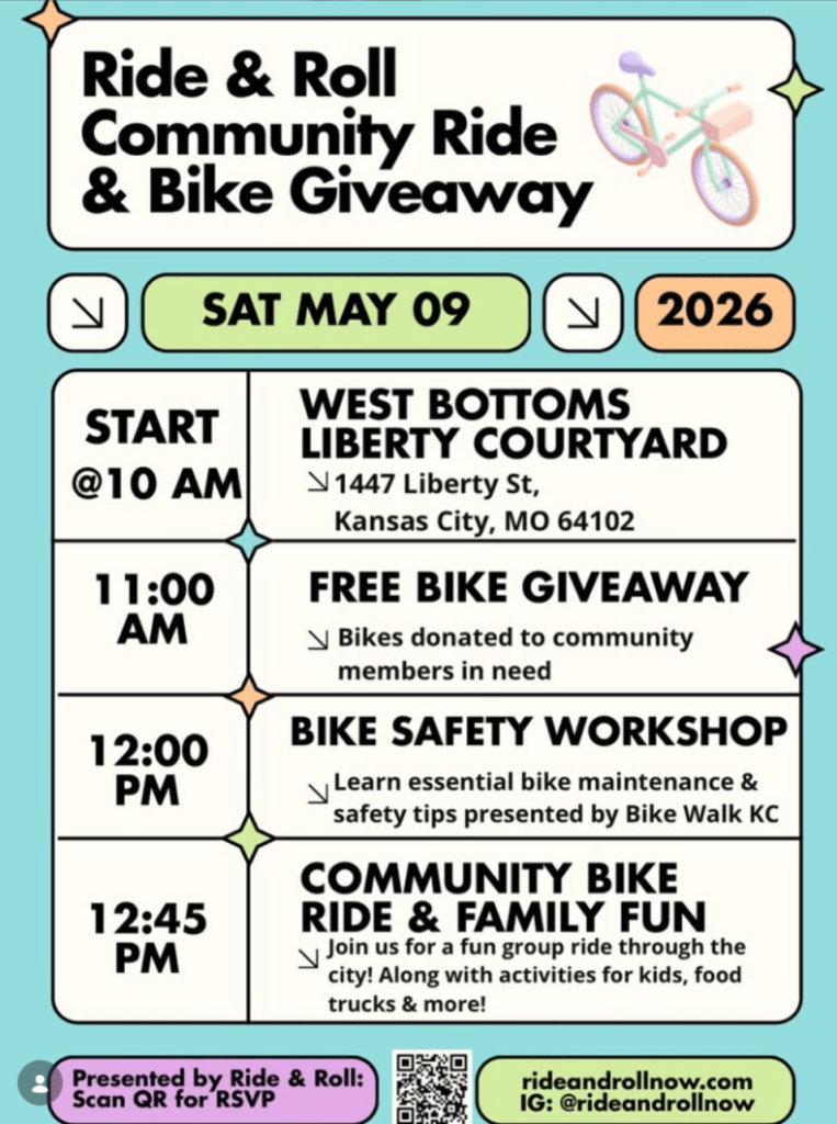Mark your calendars and grab your wheels! Join us on Saturday, May 9, 2026 at Liberty Courtyard, 1447 Liberty St, Kansas City, MO 64102 as we gather for a day rooted in movement, culture, and community in one of Kansas City’s most storied districts. Click the orange button above to register to participate OR volunteer!